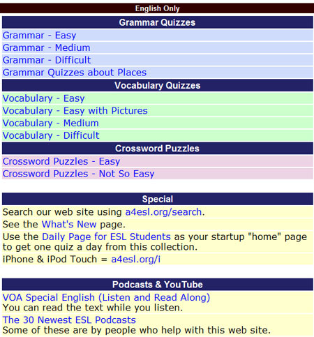 Ngoài ra, a4esl.org còn cung cấp những đường link dẫn đến những trang web có nội dung tương tự. Đây là nguồn tài liệu tham khảo bổ ích cho những sinh viên muốn học giỏi tiếng Anh.