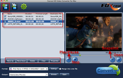 Foxreal HD Video Converter for Mac với sự hỗ trợ của HD video để giúp bạn chuyển đổi HD videos, bao gồm AVCHD (*.mts, *.m2ts), MOD, TOD, TiVo, MXF, EVO, H.264/AVC, MPEG-2/MPEG-4 (*.ts), DivX, HD WMV, QuickTime MOV, MKV, TS hoặc HD videos để cài đặt và xem HD movies trên các thiết bị di động như iPad, iPod Touch 4, iPhone 3GS, iPhone 4, Droid X , Galaxy Tab, Galaxy S, Nexus S, HTC EVO 4G, HTC Desire HD, PSP, BlackBerry, PS3, Apple TV, Xbox 360, Zune..